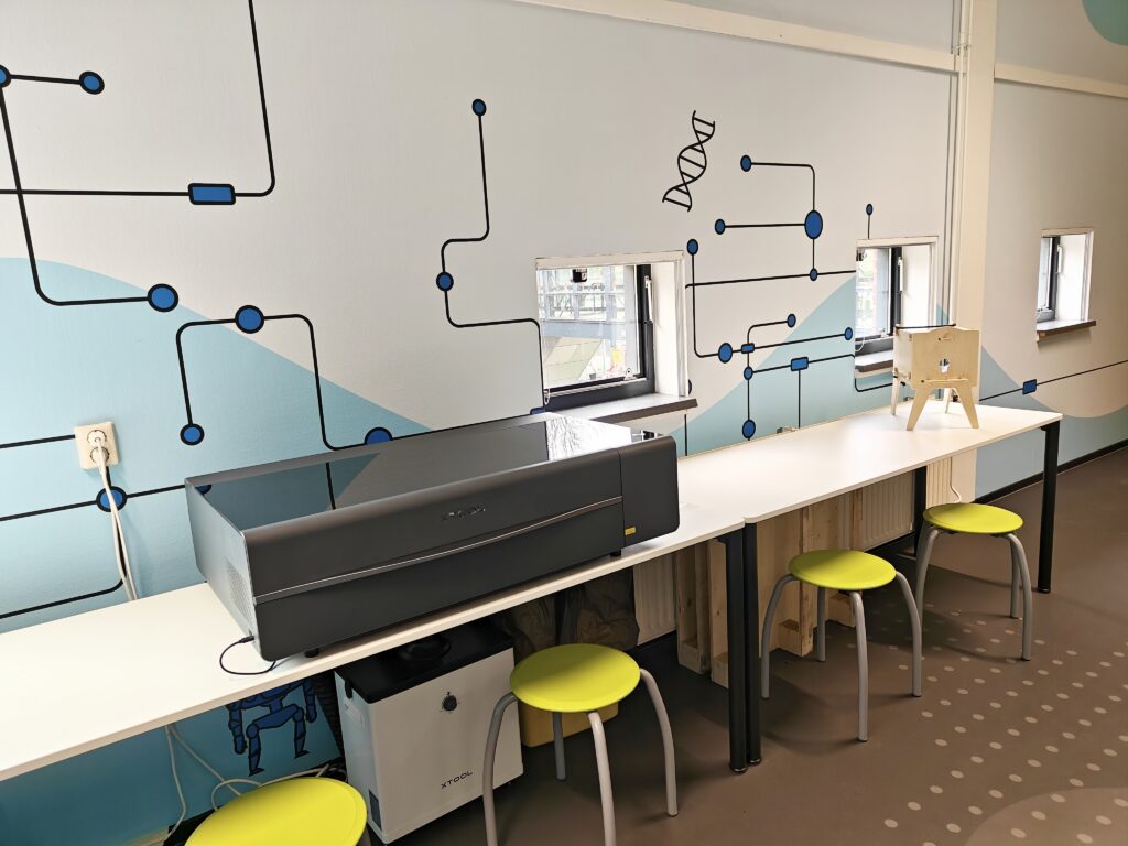 Met de lasersnijder en andere tools brengen leerlingen hun ontwerpen tot leven. Hiermee komen techniek en creativiteit samen.